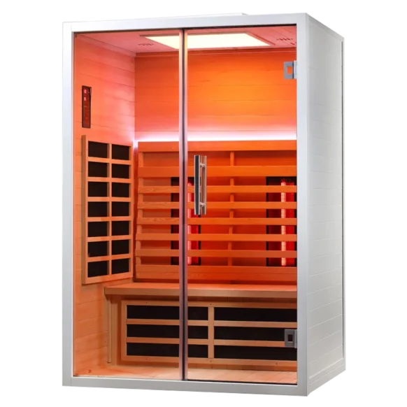 De Sumum Wit 2-persoons infrarood sauna van Sunspa Benelux is de perfecte keuze voor wie thuis wil genieten van luxe en ontspanning. Deze hoogwaardige infrarood sauna biedt diepe warmte die helpt bij spierherstel, stressvermindering en het verbeteren van de bloedsomloop. Dankzij het moderne witte design past de sauna perfect in elk interieur. Met ruimte voor twee personen en een gebruiksvriendelijke bediening is deze energiezuinige infraroodcabine ideaal voor iedereen die zoekt naar een betaalbare en kwalitatieve infrarood sauna voor thuis.